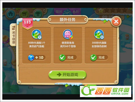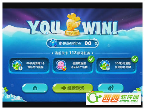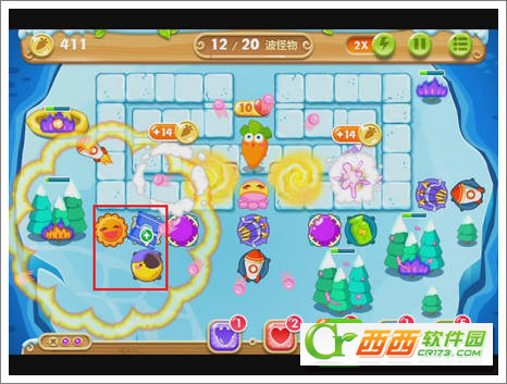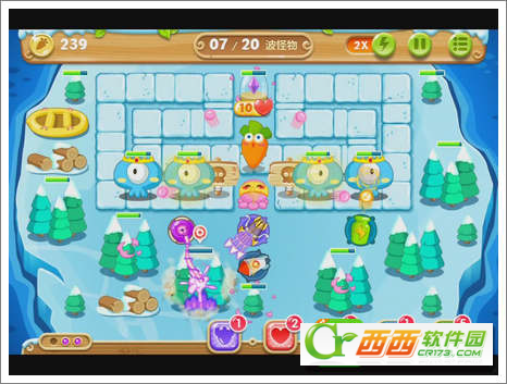 保卫萝卜2 浮冰第113这关前6波主要用章鱼炮清怪,其余炮塔清道具,最后减速搭配火力,轻松过关。