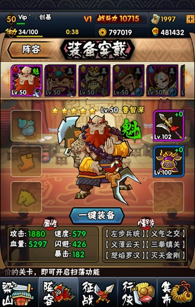 全民水浒将水浒经典剧情完美再现,打造出一款既不乏热血情节,同时又更加接地气的经典水浒手游。虽然土豪永远是游戏的主角,但是偶尔也有例外,下面小编就给所有的平民玩家带来一位全民偶像!这位叫Vip丶创基手的小伙伴勇闯拜龙头一百关,让土壕们汗颜.阵容十分特别,而且是5真1魁。