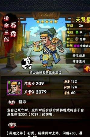 全民水浒石秀,先锋,血厚防高,但这并不足以让他成为最强前排武将,不过再加上技能的话就不同了。