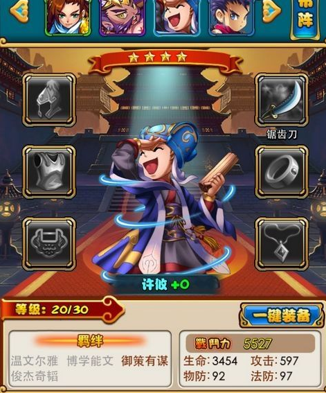 评价:作为最好的主公的他就是因为怒气技能好,全体50%降怒,并且回复一名武将4点怒气,进阶之后还有魏国光环,魏国队伍的必备辅助。