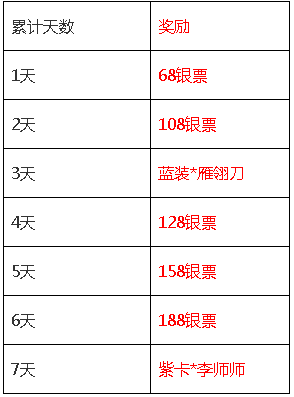 累计登录7天即可领取丰厚奖励。 银票、蓝装、紫卡~应有尽有!