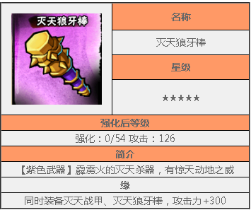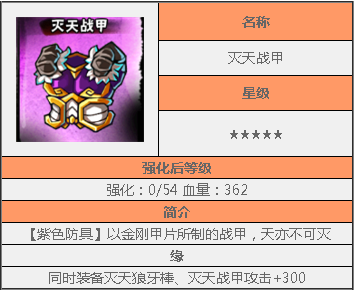 同时装备灭天战甲、灭天狼牙棒,攻击力+300