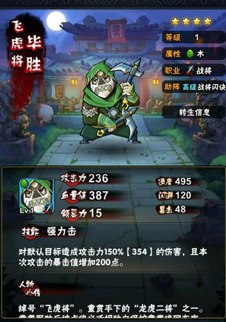 技能强力击:对目标造成150%伤害,且暴击值增加200点