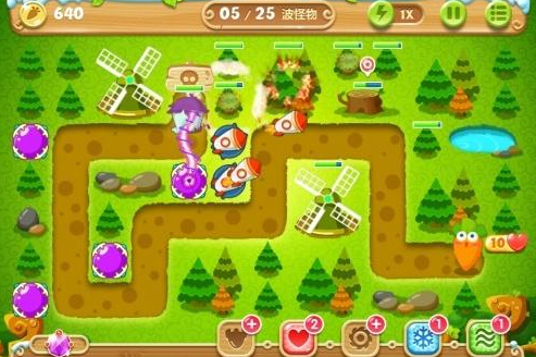 本关游戏中除了小怪物外,第10波、15波、20波会有大怪物,特别是最后第25波会出现大怪物群,需要玩家安装火箭、魔法球等攻击力强的炮塔的同时,也要兼顾在拐角等关键位置布局减速风扇,才能有计划的完成所有额外任务,并消灭所有来袭怪物,顺利获得道具全清、金萝卜和水晶萝卜全部成就。