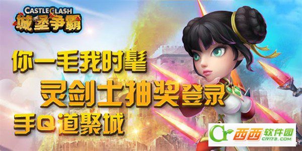 《城堡争霸》携手手Q道聚城推出灵剑士抽取活动,还有宝石、碎片、荣誉等众多礼品,只需一毛钱便可参与!