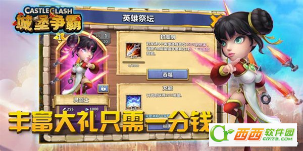 《城堡争霸》最新紫色英雄灵剑士已经正式上线啦!为了让更多的玩家有机会能获得这个可爱而强力的英雄,官方特意与安卓手Q道聚城带来灵剑士抽奖活动。只需一毛钱,便有机会获得灵剑士哦!除此之外还有碎片、宝石、荣誉等等大奖。