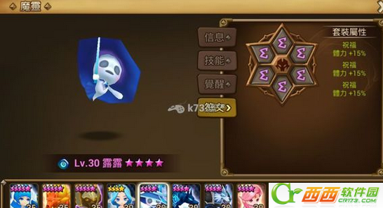 2星风属性防御型魔灵,亮点也在觉醒之后的大招,根据场上现存的队友数量恢复全队血量,多一人增加10%的治疗量,如果队友能挺到他出手,可以很好的逆转局势。
