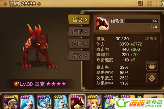 ,拥有以自身血量百分比为伤害数值的1技能以及自身恢复百分比血量提高防御力的2技能 乍两星风系列肉盾型魔灵,这是对它的初判断,但是觉醒后的大招,会心一击却是其最大的卖点,以自身损失的血量为伤害数值并且无视闪避无视抵抗无视防御,大招杀死敌人会获得额外攻击回合。是水上最大的克星。你的战斗熊有多少血,理论上就可以秒杀多少血的敌人。 逆天的存在,值得一路培养到大后期。