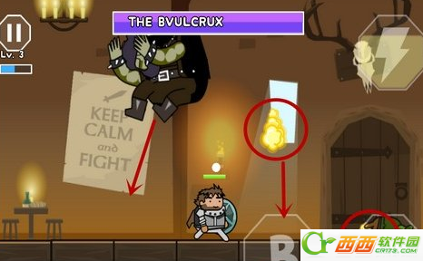 第一关玩家的战士只有一个盾牌,所以攻击距离很短。玩家需要在BOSS攻击的间隙,迅速靠近才能攻击到他。每一次BOSS攻击结束,都是玩家反击的好机会。