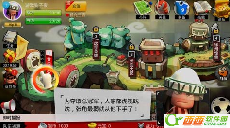 游戏开始剧情就给小伙伴们展开故事描述,逗逼人物造型贯穿着三国始末,人物造型建筑物体都能看出3D效果,顿时感觉三国时代的这些勇士们都很时尚有没有,小编选择的吕蒙角色头戴一顶布帽,身穿条纹T恤,搞笑Q萌无比呀。