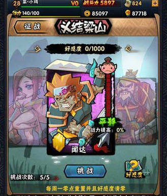 大刀天王: 李成、闻达同时上阵,血量+5%,攻击+5%