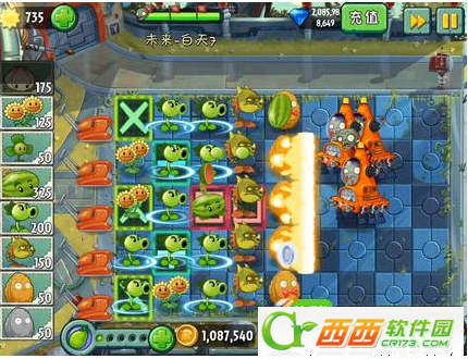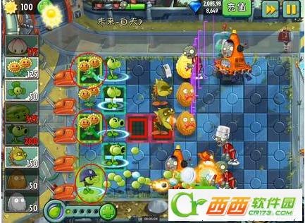 4、转折点2、西瓜投手种在同样红格子瓷砖上面,也是利用的瓷砖连环的效应,使火龙草也产出大量的攻击,秒杀僵尸轻轻松松。