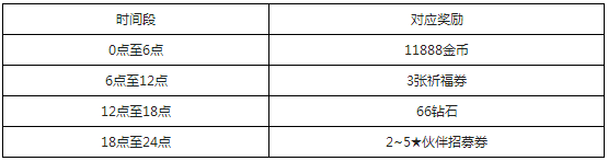 活动期间,指定时间段内登录游戏,即可通过邮箱获得下表中对应的奖励,每天每个时段都可领取一次,让您的等待不再枯燥!