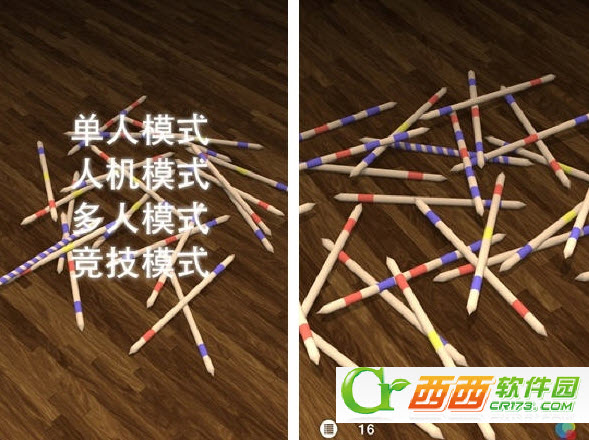 这款游戏的玩法跟它类似,在游戏中我们看见有很多很多花花绿绿的小竹签,叠的乱七八糟的,我们要做的就是将它们一根根的拿走,而不要让碰到别的竹签,具体做法就是你想拿走那根竹签就用手指点击它就可以了。