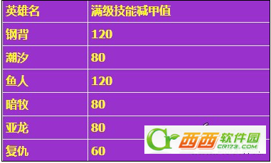 一、英雄及减甲数据