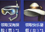 剑灵新手玩家在本次活动中可以免费获得一件泳装头饰哦,男同志领取深海探险潜水镜,女同胞领取快乐暑假帽一枚!