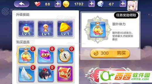 升级技能包括了体力增强、攻击强化、精灵加强,体力增强是随着技能的提升而不断地额外增加体力点数,LV2就额外增加5点体力,由LV1级提升到LV2需要800金币,LV2提升到LV3需要1300金币,然后是1800、2300、2800.....每一次升级,是前一次升级所需金币,额外增加500金币。体力增强技能,升级还是值得的。
