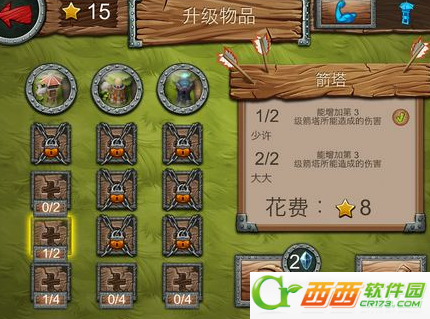 每次通关后我们可以拿获得的星星对防御塔进行属性升级,这里小苹果建议大家均衡加点,不然遇到被针对的怪物只能哭了。