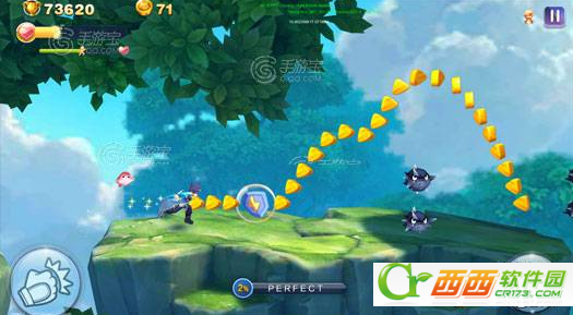 等游戏下面的Perfect槽满了之后,小伙伴们可以骑上天鹅来一场飞行哦,当然了这就是我们本次关卡的奖励了,说实在的,小编更觉得这就是天天酷跑进击模式独立出来的,只是丰富了玩法而已,不过也不错哦!