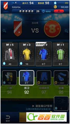 比赛前,有库存或有闲钱的玩家可以给各位置球员穿戴装备,能提升球队本场比赛的战斗力。这里有个小技巧,当接到某些任务需要球队达到XX战斗力以上时,可以临时性利用装备系统。