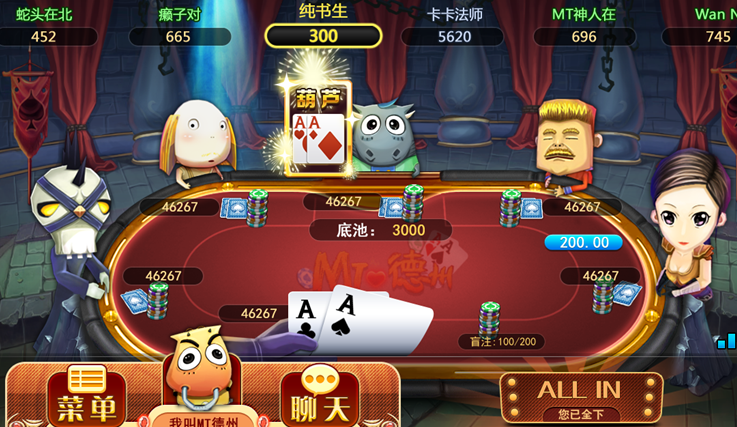 《MT爱德州》 将MT人物作为玩家的形象,在牌桌上一决高下。担心没有人陪你玩?在《MT爱德州》 绝对不会出现,无时不刻都可以做到即点即玩。传统的德州扑克,新潮的奥马哈,刺激的竞技场,三大模式同时开启,给予玩家多重的享受。
