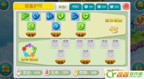 来到最后大BOSS的关头就不那么好打了,首先我们把护符都装备到位,因为护符所带来的增长也是非常厉害的,不仅是主力需要替补精灵也要。