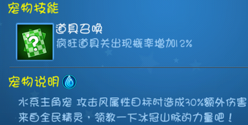 水系主角宠,攻击风属性目标时造成30%额外伤害