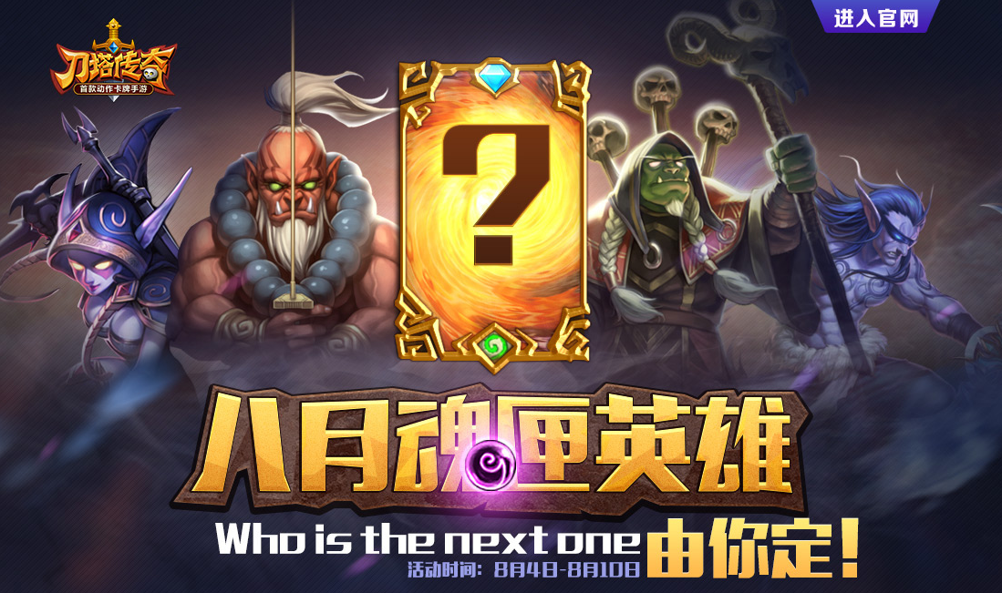8月4日至8月10日,登陆新英雄票选活动页面,为你最期待的英雄投出宝贵的一票,最终得票数最高的英雄会"特权登陆"8月份的英雄魂匣!