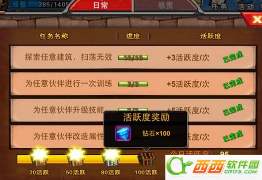 日常任务中只要满足活跃100点就可以领取100个钻石。