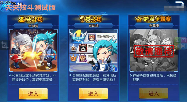 首先原有的竞技场保留,这个就不在多做叙述,新增的决斗场,就是与其他玩家手动实战的地方了。