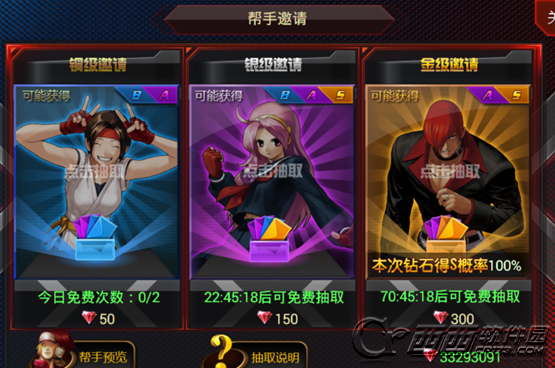 铜级邀请每日有2次免费邀请的机会,可能获得B级和A级的帮手