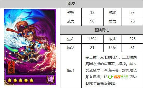 放开那三国邓艾是最新版本中推出的新武将之一,话说邓艾是三国时期魏国一员大将,外能遇敌三千,内能持政安邦,全能型将才。最近经过几番更新,邓艾也是毫不犹豫的登上移动三国,那么放开那三国中的邓艾是否能向历史长河中消逝的那个家伙一样有勇有谋呢?