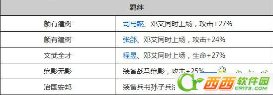 所谓羁绊就是和武将一起搭配会出现的属性加成