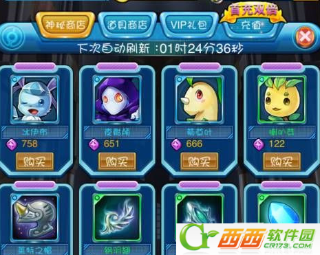 在神秘商店可以用微章购买到2-5星精灵; 也可以买到2-5装备;星级越高需要微章越多。神秘商店刷新出来的商品,如果玩家等级越高,刷出来的东西越珍贵,是后期获得转生材料重要渠道!系统每个2小时自动刷新商店商品,玩家也可以划分黑市货币或者10钻石马上刷新商店商品。