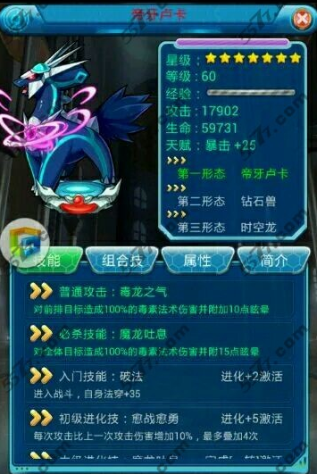 5、在关卡中刷取低级的宠物,然后进行合成也可以得到7星级宠物。