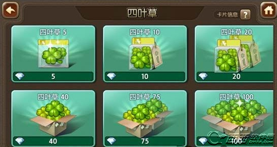 2、好友之间的赠送总归是太过被动,想要主动大家也是可以去购买四叶草的。当然游戏中获得的金币是无法购买四叶草,大家只有使用钻石来获得购买的。不过游戏中免费获得的钻石是有限的,大家使用完了只能花钱购买。