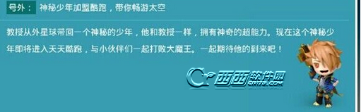《天天酷跑》在出了超能少年后,据爆接下来还将有位神秘少年即将登场与玩家朋友们见面。超能少年都这么厉害了,相信这位神秘少年也不会让我们失望,据说这位神秘少年可是教授从外太空带来的好基友哦!可能大家最想知道的还是这位神秘少年的出场时间和技能属性了,下面小编就给大家做详细的介绍。