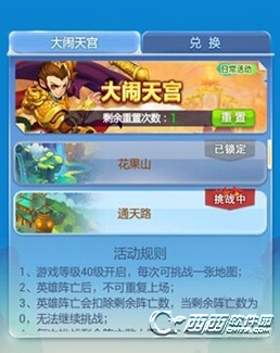 花果山:守关将基本在30级以内,较为好打;推荐新玩家在此奋斗!!!宝箱有金币及各色初级卡片进化材料。