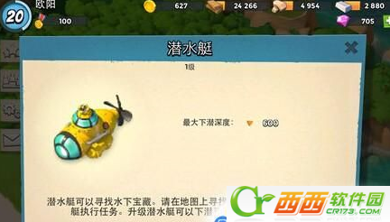 海岛奇兵潜水艇是最近游戏版本更新后出现的,玩家可以通过建造潜水艇后开启海底寻宝的玩法,海底的宝藏那不是认了ineng预测的,当年加勒比海盗船长的所有宝藏都在海底埋藏,有了潜水艇,啥都好说。