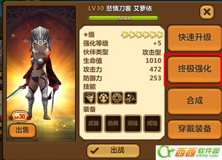 首先,你需要有一个6★满级(30级)并且强化+5的小伙伴。在队伍功能中点击需要进行终极强化的伙伴,弹出伙伴界面后,点击右上方的终极强化按钮。