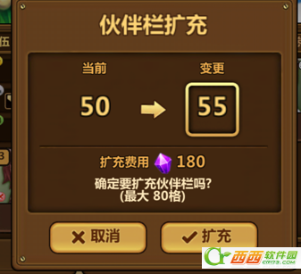 点击主界面中的队伍按钮,即可进入背包界面。再点击伙伴栏最下方的添加按钮,就会弹出,伙伴栏扩充的界面,每次可以扩充5格空间,最大扩充到80格。