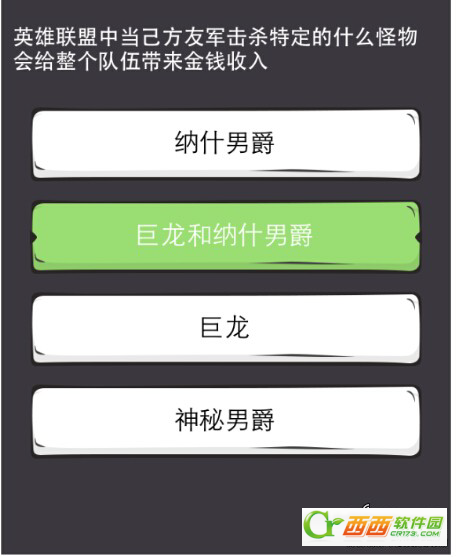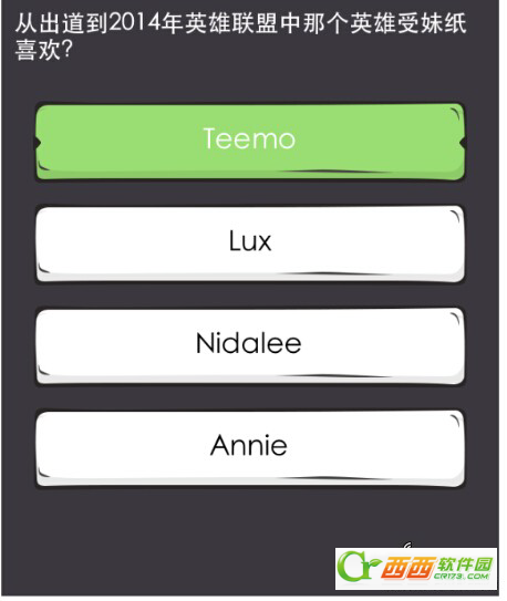 做法解析:这道题其实并没有什么技巧或者难点,只要打过lol的小朋友应该都知道怎么选(好吧,小编选、错了。。。作为一个分不清东南西北和上下左右的人。。。。。人艰不拆)