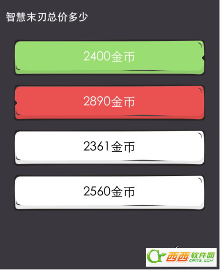 做法解析:智慧末刃是lol游戏中的一件装备名称,小编其实并没有怎么用过这件装备,不过这道题也是有一些做法的,因为我们可以看到这道题出了A选项之外的另外三个选项数字都精确到十位甚至个位,其实说到这大家可能就明白了一般这种装备的价格都是精确到百位就可以,所以我们大概可以猜一下这道题选A。