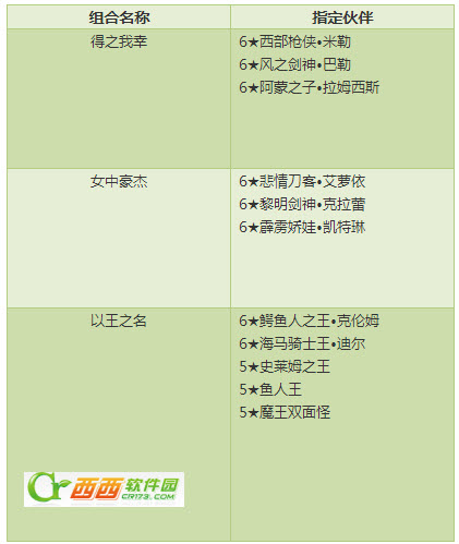在8月15日中午12:00时,持有下表中任何一组所有指定伙伴,并将这些伙伴升级到30级和强化+5,即可于8月18日晚18:00起通过系统邮件获得6★装备兑换券一个: