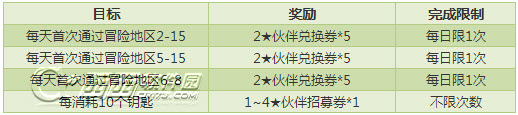 50钻石,2~5★伙伴招募券,2~6★装备兑换券
