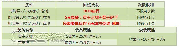 活动期间,购买高级伙伴营地达到以下条件,即可立即通过邮箱获得对应丰厚奖励!其中每购买2次高级伙伴营地,其中1次就可以享受半价优惠喔~