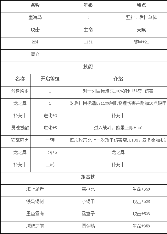 墨海马阵容搭配介绍: