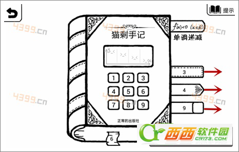 1.首先把书周围的便签拉出来。可以得到四个数字“6、9、4、3”和一个公式f '(x)<0(x∈R)(这个公式是数字由大到小排列的意思)。所以我们的密码就是9643。