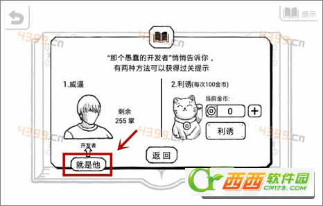 2.然后我们就可以看到作者的肖像了。点击“就是他”按钮,就能顺利过关啦!(木木已经无力吐槽作者了。。)