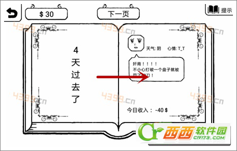 1.首先还是要一直向右翻书的,但是翻到第四页就行了!也就是出现“4天过去了”几个字出现后,我们开始向右滑动,返回前面的页码。